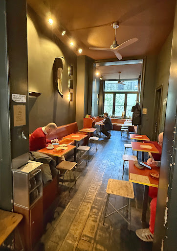 Cute outpost of this Brussels classic! Belga was on several lists of recommended coffee shops for Brussels, so I knew I had to pop by when I was in the area. The cafe is quite cute, with plentiful indoor and outdoor seating, and cozy wooden decor / furniture. The baristas are all quite friendly and the coffee is solid, although a smidge acidic for my taste. I got a cappuccino with one of their alternative milks (I, admittedly, forget which one), and it had a great ratio of foam, milk, and espresso. The espresso was quite bright and fruity, which isn’t my usual preferred flavor profile for an espresso and milk-based drink, but I think it’d be tasty alone or in an americano. They also had a ton of gorgeous pastries that we were too full to indulge in, but we’ll be sure...