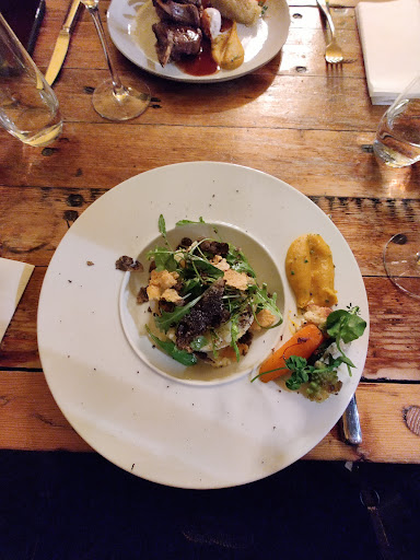 Read moreThe place is small and cozy, although it can be noisy when full. The menu does not have a wide offer, but it becomes very narrow for vegetarian dishes. At the time of writing there was only one main dish without meat, the vegetable cous-cous. So, the focus is on meat and the vegetarian main dish is really just a backup. In two people we had a starter, two mains, two desserts and a bottle of wine. The portions are adequate and we were full at the end. The wine was quite good (and pricey), the dishes were tasty as well, but maybe not as much as I would expect from the price. In particular the vegetarian main and the dessert (tarte tatin) would not surprise me in a lower end restaurant. The filet with summer truffle was reported as very good. Overall a positive experience, the staff was welcoming and ready to provide allergy information. It would be 4 stars if it wasn't for the poor...