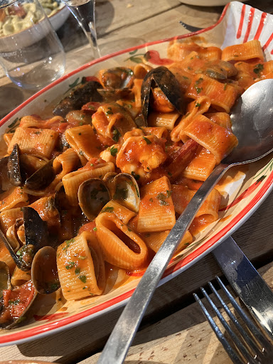Read moreStrange welcome at 18:20 pm, they told us they were closed... asked them when they would open, and the girl told me I should get back in 10 minutes. Terras was completely empty, so after asking a second time we got a table assigned anyway. Very slow and chaotic service (even when they opened after 18:30). Took us about half an hour to get our drinks. They tasted well in the sun. We had a delicious antipasti with bruscetta and burrata. Perfect to share 2 plates with 4 persons as a starter. After not much of a wait we got our pasta dishes. Me girlfriend and sister received their tagliatelle tartufo, but shockingly the piece truffle had little worms crawling out. Terrible mistake and tells me the kitchen is very unprofessional. It's known that flies like truffle as well. So a wrongly treated truffle might have some flies eggs inside. But a good chef cannot overlook this. We returned the plates, got a another dish, but pretty much lost our appetite. These things can happen ofcourse, but the way the staff ignored their mistake and avoided to come back to us with excuse or a compensation gave us a sour taste. I'll never come back to...
