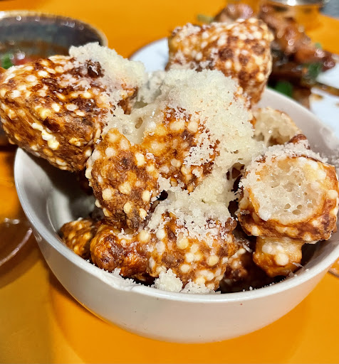 Extremely rude staff! They don't even give you plates despite it being a food sharing concept, when asked for plates they reacted very poorly, saying they needed the plates to serve other tables? How did they expect a group of 4 to eat shrimps on the same plate?!