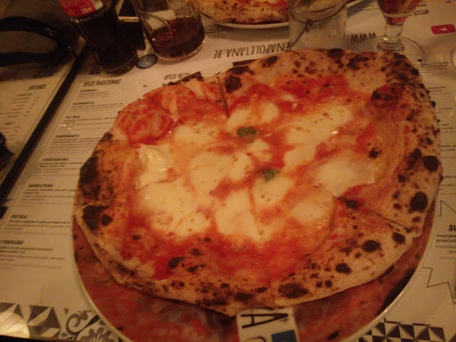 Read moreWe really have to write separate chapters for this review. Let's start with the food, the pizza itself: it's a very good pizza. To be fair, it is probably the best "cornicione" (crust) I ever had, which clearly means the quality of the dough is outstanding. Super easy to digest, it felt very light, the only two flaws I can highlight is that my pizza was probably a bit too wet on the base and the dried tomatoes were not of the best quality. Nevertheless, it is a great pizza and it is fair and right to say so. Chapters two concerns the service. Our waiter seemed really....out of place...we got the sensation that it was his first day ever working as a waiter, he did not know very well what to do, how to do it, felt constantly insecure, did not know how to put the pizzas on the table, how to put anything on the table...I don't know, maybe he needs some training...but for sure it affects the whole experience. Chapter three is about the place itself, its design, its vibe. Of course this is a matter of personal taste but we found the place not welcoming at all. Walls are painted with dark colors, tables are superclose to each other, decorations are quite confusing and include, among others: a Diego Armando Maradona graffiti-portrait, a Virgin portrait, a trumpet, a Belgian car plate, pictures of the owner smiling or making pizza, a black and white picture of a lion, motivational slogans about pizza written with chalk. The lighting is very strong, like in dental studio. Last but not least, we also did not like very much the choice of the plate in which the pizza is served, with the image of a pizza and the social media of the pizzeria imprinted on it. So, in a nutshell: good pizza, unexperienced staff, a lot to improve in terms of...