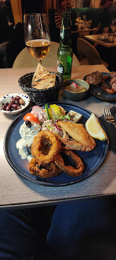 The host was nice to offer us to choose a seating area (as you will see later, the service is the strongest side of this restaurant, so thanks to the team for that!) There were 3 options: terrace (too cold - lovely Brussels weather), ground floor (SUPER tight, noisy, door is always open = cold), cellar. We opted for the cellar: the stairs were not comfortable, you really have to make an effort to go down. You pass the restaurants pantry, tech.room, dish washing station on the way, it stinks and is barely covered by a little curtain. You just want to arrive to the dining area asap and forget the itinerary like a scary dream. Once a curtain (again) opens, you are shocked: the ceiling here must be around 2m ! The design is nice, but after a while all you see is a ceiling hanging just above you… I saw NO ventilation in this room with no windows and close to sanitary rooms, so I let you imagine the air. This room certainly wasn’t meant to be hosting! Ok, maybe a good Meze could distract you.. but, unfortunately, it wasn’t the case. The dips (tzatziki, tirokefteri, tarama) were overly spicy and texture felt industrial. The meat (skewer) was overly cooked and not marinated enough. The meatball was bland, we had to put spices on everything. The salad was tiny, the rest kind of ok. In a summary: overall an OK experience, thanks to nice waiters, but I would definitely not return to the...