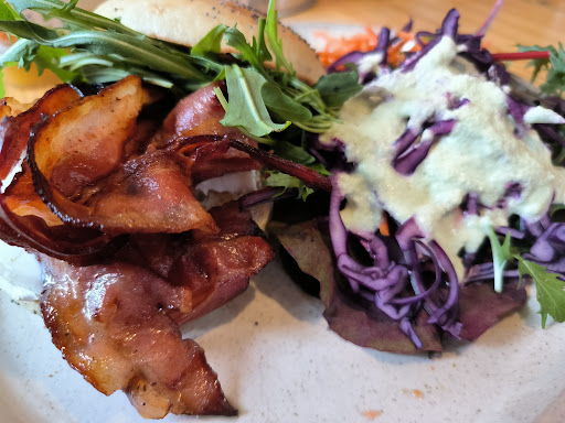 Read moreWe really like it. We were in a rush because we had to leave quickly and the service was very quick, although the tables were full. The place has two separate areas, and if you seat in the one away from the counter, you'll see how the door is open/close all the time with dishes. It would be kind of tiring if you seat close to it. When the weather is nice they have lots of tables outside in the street. In terms of the food, for us the best bagels we ate so far anywhere. They add in the plates a very nice salad also. Staff was a bit lost in terms of dishes and tables but in general very efficient and fast. You should try this place if you want to enjoy...