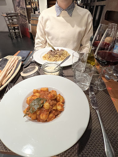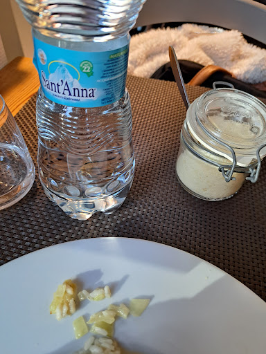Read moreTrès décevant ! Tout d'abord il faisait très froid et le chauffage n'était pas allumé. Donc pas idéal pour manger dans une ambiance pareille. Ensuite concernant le menu le choix était très petit et malgré la remarque du garçon qu'ils n'ont que des produits frais je ne les ai pas vus dans l'assiette ! En quoi un risotto et des pâtes peuvent être considérés comme des produits frais ? J'ai demandé des légumes étant donné que je ne mange pas de viande. Ils n'en avaient pas. C'est pourtant cela que je considère comme des produits frais ! Le vin qui lui aurait dû être frais était chaud ! Il a fallu tout le temps du repas pour qu'à la fin, dans un seau à glace, il obtienne la bonne température. Les photos montrent une petite recherche de présentation mais franchement le risotto était immangeable, le reste sans goût. Seul le dessert de la mousse au chocolat était agréable. Le gâteau aux noix était très sec. Vraiment trop déçus. Dernier point les serveurs ne parlaient qu'italien ou un anglais approximatif. Mais ça c'était pas grave. Le plus triste c'est que le prix était fort cher pour si peu de choix et si peu de goût dans un cadre original certes...