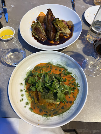 Food-wise, we started the meal with the burrata. The cheese was creamy and rich, and it went beautifully with the fragrant sun dried tomatoes and peppery arugula. It was also topped with a few croutons — which were tasty and clearly house-made, but I was a little confused on how to eat them with the cheese (vs. the more classic method of putting burrata on a slice of toast) — and a flavorful sauce. All around a great combo of flavors and textures, making it the perfect start to our meal. For our mains, my friend got their duck and I ordered the pollock. They both had pretty generous portions, especially the duck. The pollock was perfectly tender and flaky inside, with a delightfully crispy skin / herb crust on the top. It was topped with fresh herbs and served in a super flavorful sauce — truly could not have asked for a better entree. The dish was relatively light but extremely flavorful and filling, and the fish just fell apart in my mouth. I’m not quite a French / Belgian food convert yet, but I’ll happily come back...
