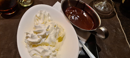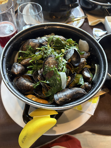 Please do not go cheap, because it is already cheap! So take a full menu, so you do not pay à la carte price if you take 1 menu for 2 persons. The portion is big! Think about if you can have a free choice menu, and à la carte price for the oyster are 15 euro... how many do you think you get? 6. What is really low, hard to find. Quality and food combination is alright, not fine dinning, more than level up of home cooking. Would like to have more pate. Main course of course the mussels we picked saffron, what I cannot taste, pity, what they do have is a lot of lemon. We have also the duck what is a disaster, it seems like double cooked, grilled once and afterwards left it and when main needs to be served, once more or put in the oven, making the outside dry out so much and center raw/medium. We have also the steak, what is wonderful done, not like black Angus or any high and beef but well-prepared also with the sauce (mushroom). Served with fries, what is really pity because they are not crunchy and a bit crumbly not soft. Maybe we had some damn good fries in the center. Dessert is a bit of a let-down, smaller portion than the other courses. Home level. What I need to give some points are the plates and the presentation, well thought, not too much fine dinning mindset but more practical.
