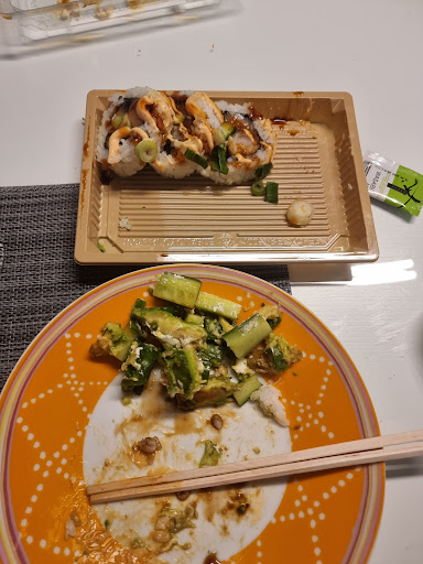 Read moreI'm typically inspired to write reviews for places that I find either exceptionally good or downright awful. This is for the latter. Not gonna lie. It was really bad. So bad that it was hilarious. Where do I begin? You know how the sushi is rolled in tightly? Nope. The rolling was extremely loose. The flavourful sticky rice was replaced by a tiny amount of, what I assume was, plain arborio completely devoid of any taste. I got a classic sushi with crab and an original creation with shrimp. In both of them about 50% of the filling was thick pieces of cucumber. And there was roughly cut lettuce and mint. Lettuce! And mint! To no one's surprise they didn't complement the flavour of either crab or shrimp. Not all was bleak though. I also got chicken gyoza that was quite good! And was accompanied by a really nice mango sauce. Anyway, if you are ever in the area do yourselves a favour and go eat...