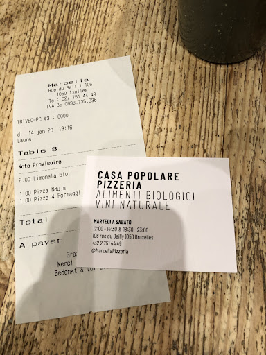 Read moreMarcella's is our go-to spot in Brussels for some seriously good pizza. Their tomato sauce always tastes super fresh, and the toppings are top-notch. It's definitely up there among the best pizzas in town.