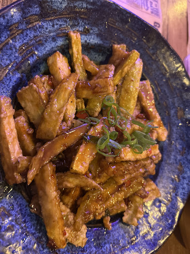 Took a while for the food, which is fine because it was busy. One of us ordered fried rice with beef and there was hardly any meat mixed into the rice, which was a stodgy mess. My eggplant dish was very acidic and otherwise kind of bland. The sauteed noodles were okay. But alll the portions were small given the price.