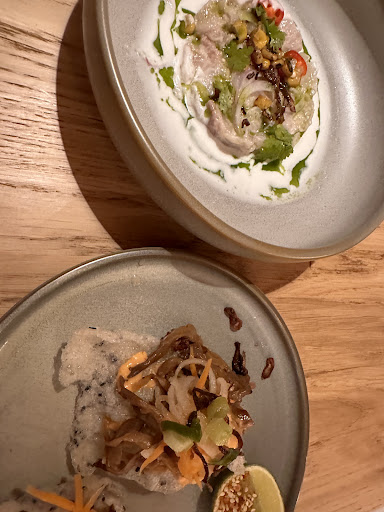 Read moreThere should be a warning that only one dish is served at a time - we spent over two hours waiting for our various dishes. While the first one did come relatively quickly, it was tartare, which I do not eat, so only my partner enjoyed the dish and I did not actually get any food until the second dish was served, over an hour after we had ordered. The remaining two dishes came about 30 minutes before closing time, so we could not fully enjoy them or order more. The cherry on top was the rice on the side, which arrived only at the end, after we had gotten all the dishes! The unique cocktails have no outstanding flavor and sometimes use basic alcohols, yet when we asked for a classic cocktail knowing the ingredients are available we were told no. No apology from the staff throughout the whole time. Shame because the food itself...