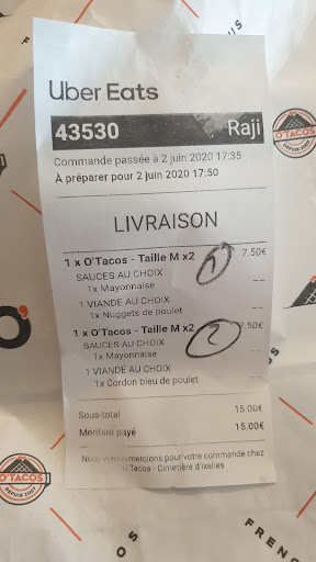 FÉLICITATIONS Je me suis rendu mardi soir O'tacos d'Ixelles. Nous avons commandé pour 7 personnes. En rentrant à la maison malheureusement nous avons dû nous débattre en coupant dans notre tacos pour savoir à qui cela appartenait. Nous avons perdu énormément de temps et avons mangé pratiquement froid. Mécontente j'ai immédiatement téléphoner O'tacos d'Ixelles en demandant le responsable en ligne. Je l'ai eu personnellement et je lui ai expliqué la situation, celui-ci m'a directement dit revenez on vous fait un échange. Je lui ai dit non ce n'est pas possible vu que je viens d'une autre commune tant pis cela sera pour une autre fois. Immédiatement le responsable m'a demandé mes coordonnées il m'a dit qu'il laisserai un ticket à l'accueil que quand je reviendrai un geste commercial sera immédiatement fait. Ce soir 21 juin 2019 à 21h33 nous nous sommes rendu o'tacos d'Ixelles où nous avons passé une commande pour ma famille, nous avons expliqué la situation en disant que nous avions eu contact avec un responsable et qu'un ticket à mon nom devait s'y trouver. Après une petite recherche il ne trouvait pas. De son propre chef. Un des responsables à contacter téléphoniquement le gérant en lui demandant si il se souvenait d'une personne qui s'était plainte en laissant ses coordonnées et son numéro de téléphone, le gérant a répondu et confirmer OUI ! Et bien !! le geste commercial a été fait à mon grand étonnement, la parole a été tenu sans discussion et le repas familial nous a été offert à tous.