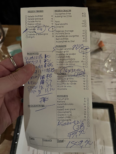 Read moreSmall portions for extremely high prices. A small portion of moussaka 19 euros. Greek salad 14 euros. 4 pork skewers 19 euros. Also, the pork skewers were sweet! They had probably some honey or petimezi in the marinade, so the taste was really unpleasant and not at all close to the taste of real Greek skewers. Also they were very small. The quality doesn't justify the price. So overall, overpriced for below average and not remotely close to, Greek food. I wanted to go there long time now and it was pure...