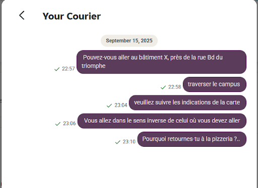 look this screenshot of my chat with the deliverer, he doesn't even read it....