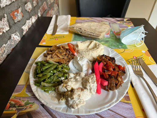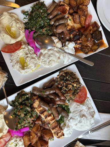 We enjoyed Lunch with family in this Lebanese resto. The atmosphere at entrance seems like another take away PITA place but the decor around the tables is excellent and actually shawarma was not even on menu which is typical for PITA places. We ordered "Assiette libanaise" dish which is 1 brochette and 4 mezze dishes to choice: so we tried humus (loved it!) the eggplant salad, Tabbouleh, labneh cheese, and some other Lebanese cheese salad - everything was delicious. We also ordered Assiette Tabbouleh with 2 brochettes+fries+salad tabbouleh. I read before a review saying dishes were not big enough, which i disagree - believe me, after you eat the Assiette Tabbouleh you're not hungry anymore. All dishes were €10/dish while separate mezze were €5 per mezze. All in all we paid €17 per person wine included and dessert (delicious by the way) was offered. Excellent...