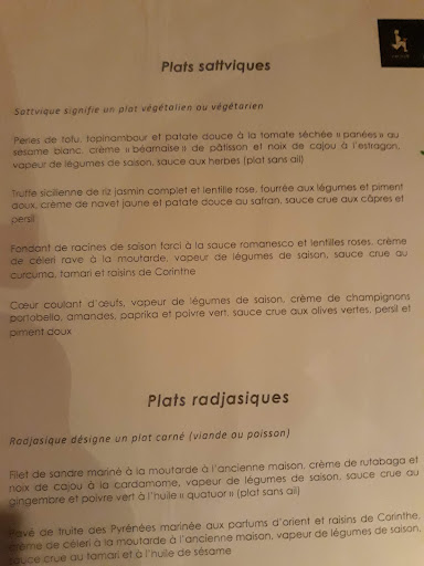 The restaurant is located on the first floor and has actually a very sober and refined decor, although one has to go through the bio grocery shop on the ground floor before getting to the stairs. The menu is not extensive, but everything is cooked to perfections. We ordered the fennel / avocado tartare and the raw spinach soup as appetizers, and the Sicilian truffles and the lentil falafel as mains. Ingredients like dairy and coffee are off the menu, as they are considered toxic. They have nevertheless a good tea list. The wine we picked (also bio, from the Terrasses du Larzac) was very mineral in taste and a good combination with the food. The service is impeccable, but the restaurant does get busy and the pace can slow done. It was not a problem for us, as we were slowly enjoying our food. The prices are on...