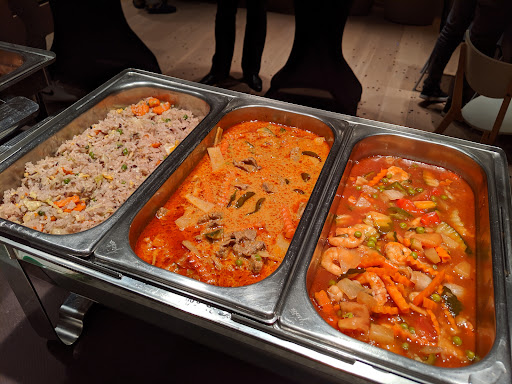 I can't argue with food quality, but they have not treated us very nicely. They told us, we can buy takeaway containers for 10 euros, and we get a free samosa and eggroll each time. Cool. Well, they "forget" our free samosa and eggroll unless we specifically ask - we got home a few times without. Not nice. We always get Thai chicken, price, 9.90. Now, we've gone to pick up the food, and the price is suddenly 11.90, but posted nowhere inside the restaurant. We showed them an online screenshot, and they just said, we upped the prices. 20% in one month? From 10 euros to 12? AND we have to have the discussion EVERY TIME about the samosa and eggroll that should be included with our take away containers? It is very delicious, but I feel very disappointed. UPDATE: now they just REFUSE to give the spring roll and samosa after selling us the containers, AND they didn't even close properly the container they sold us, so the sauce...