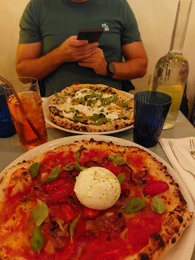 The pizzas have good dough, I give you. The ingredients are of good quality but something was wrong. My friend had a pizza with truffle cream and mushrooms and there was too much cream, which on top of that was cold. I had one with burrata and pancetta. There was a whole burrata on top, which is great, and the tomatoes were good. However, it was also kind of cold, the pancetta had a strange aroma (like curry?!) and altogether it was kinda watery. To the pizzas I would give 2.5/5 because they were almost good but something was missing.