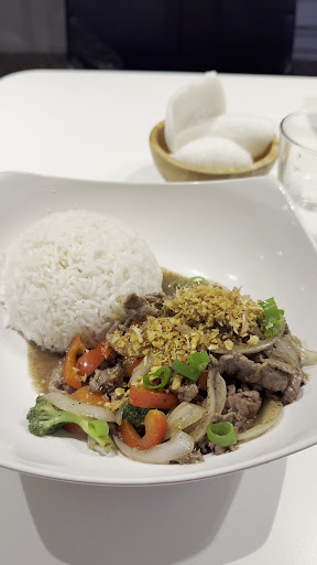 J ai pris un thaï nodle soup a 10,'5 euros. C etait un bouillon au poulet et salade. D aspect un peut décevant mais ca arrive souvent avec les soupes asiatiques. Par contre elle.n avait absolument aucun gout. J ai rajouté la sauce sriracha mais rien n y fait ca ne passe pas. C etait vraiment extrêmement fade, style soupe Chinoise du hainaut. Je demande gentillement si c est bien une soupe thai qu on m a donné. On me dis que non, que la soupe thai est un autre plat, on me répète le nom de mon plat sans y mettre le terme «thai». Je retourne a ma place et regarde la carte. J ai pourtant bien payé pour un thai noodle chicken bowl. Je retourne chez le vendeur qui me dit que cette soupe la n est pas une soupe thai. Que si je veux le peps des soupes thai, c est un autre plat. Je lui demande alors pour changer et il refuse, a trois reprise. Son excuse est que c est la soupe la plus vendue et qu il n a jamais eu de plainte. Je m appercois maintenant que c est pas le cas. Les plats des autres. Clients avait l air bons. Moi je n ai pas pu mangé, il n a pas voulu adapter ma soupe non plus car ca allait casser le plat original, ....😠. Bien que le serveur soit resté poli, je trouve pas ca une reaction face au client. J ai eu l impression de me faire voler. Ce n est pas normal de dire au client que la soupe thai n a rien de thai. A peut dr. Hose prêt il me disait que pour 10 euros il fallait paw s attendre a avoir quelque chose qui a du gout... soit z deconseillerz meme si je suis sur que d autres plats on su goût....
