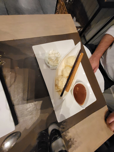 Restaurant waar je rustig kan dineren en aangenaam kan zitten. Bediening is vriendelijk. De drie starthapjes waren van hoogstaand niveau. Hierna wel ruime tijd moeten wachten op het voorgerecht. Bordjes van voor- en hoofdgerecht mooi gepresenteerd en ruim voldoende. Cuisson van de filet pur perfect...