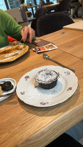 In de namiddag langsgegaan voor Tea-room. Mooie zaak en gezellige sfeer. Een moelleux en 2x pannenkoeken gevraagd. 7 euro voor een moelleux die recht uit een verpakking kwam, niet eens uit het papiertje gehaald. Zonder bolletje ijs, beetje fruit of andere .. heel flauw. Was zelf niet goed genoeg gebakken want je kon het niet uit het papiertje halen zonder dat het uit elkaar viel. De pannenkoeken waren heel dik waardoor ze niet helemaal doorbakken...