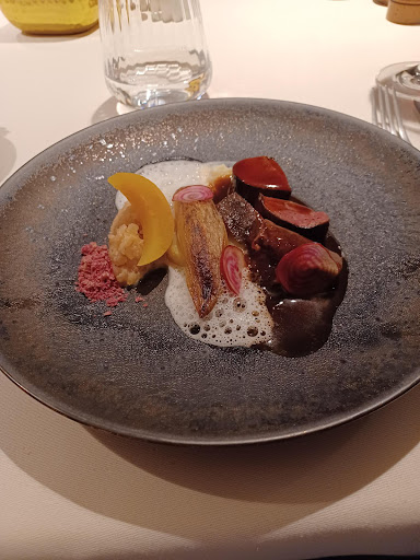 Zeer vriendelijke en welgekomen ontvangst. Mooi ingericht restaurant, aangename tafelverdeling, met mooie decoratie. Het restaurant was volgeboekt maar je had niet het gevoel te dicht bij elkaar te zitten, akoestiek was ook heel goed. Vlotte bediening eenmaal aan tafel, alles wordt mooi uitgelegd uit wat je kan kiezen en of er al dan niet een aanpassing moet gebeuren aan de vaste menu, de vrijdagavond en zaterdag alleen 5 gangen menu, al dan niet met aangepaste wijnen of de BOB formule. De gerechtjes komen vlot en de wijnen zijn alreeds net voor het gerechtje ingeschonken met een zeer uitgebreide uitleg van de sommelier, die echt kennis van zaken heeft, de bediening is niet stijf, maar wel net goed genoeg om het de klasse te geven die dit restaurant wel uitstraalt en ook wel verdiend, want de gerechtjes ogen niet alleen mooi, ze smaken dan ook nog eens heel lekker, echt een topper, zeer verfijnd, je voelt en smaakt dat er daar liefde en veel werk en tijd is ingestoken. Keuze om mits bijbetaling een kaasplankje te nemen, geen enkel probleem als dit niet gewenst is. Achteraf kan nog koffie, thee bijgenomen worden met daarbij alweer leuk bedachte sneukelingskes. Wij keken er heel hard naar uit om daar te kunnen gaan eten, want was zeker al 6 maand ervoor geboekt, ik kan je zeggen het was het wachten voor ons zeker waard, alles klopte. Het enige minpuntje wat ik persoonlijk vond is dat het niet echt warm was in het restaurant, maar ik ben ook wel een koudelijke. Ik wens gans het team een dikke proficiat, das een topzaak die Izegem erbij heeft. Eentje van het betere vakwerk. Wij komen hier zeker terug, al zal het dan mss wel zijn dat dit restaurant ondertussen een ster heeft. Moesten ze daarop mikken dan zit die mogelijkheid er zeker in. Prijs kwaliteit top, al vonden we de champgne als apero duur naar de rest en heel weinig in het glas. Maar hij was heel lekker en zijn daar nu ook niet over gevallen. Zeker een aanrader voor wie graag...