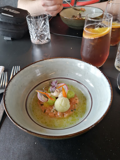 Bij het binnenkomen werden we zeer vriendelijk onthaald. Een lieve juffrouw begeleidde ons naar buiten. Onder een tentzeil waren de tafels netjes ingedekt. De temperatuur viel mee. Niet te warm maar ook niet te koud. Dat veranderde na een fikse onweersbui. Het koelde toen buiten wel heel erg af. Je kon een dekentje krijgen. Maar er werd niet gevraagd of we de rest van het diner binnen wilden nuttigen. Vond ik een beetje jammer. Het restaurant voorziet geen menu. We kiezen dus a la carte. Aperitief met als hapje gazpacho, voorgerecht, hoofdgerecht en dessert. Alle gerechten waren zeer smaakvol. Dat mocht ook wel want de prijzen liggen iets hoger dan in een gewone bistro. De bediening verliep vlot. We hebben niet te lang moeten wachten. Kortom, we waren heel tevreden met ons bezoek aan...