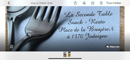 Read moreRapport qualité/prix, La Seconde Table est de loin le meilleur restaurant de Jodoigne. On ne vient pas y chercher les chichis d'un restaurant gastronomique, il s'agit d'un restaurant familial. La sympathie du service par rapport à d'autres adresses dans la ville ne fait que pencher la balance de façon positive. Un restaurant comme on en...