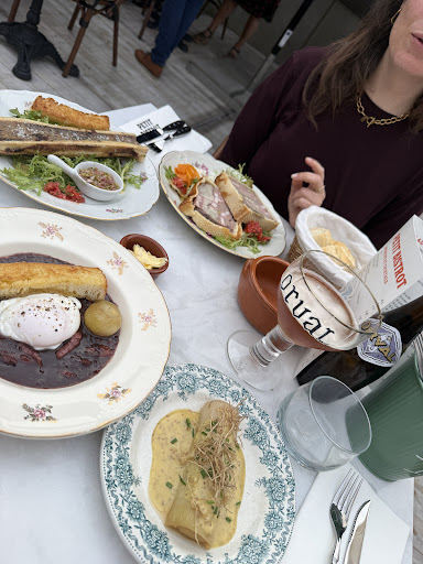 Un vrai bonheur ce Petit Bistro ! On sâest lancĂ© dans un joyeux partage façon bouillon : les Ćufs meurette, bien riches, avec leur sauce au vin qui appelle Ă saucer sans vergogne ; le poireau grillĂ© qui claquait avec sa vinaigrette relevĂ©e ; un os Ă moelle gĂ©nĂ©reux Ă Ă©taler sur du pain croustillant ; et ce pĂątĂ© en croĂ»te maison qui avait le goĂ»t des grandes tablĂ©es dâantan. Les cocktails sont bien balancĂ©s, et le petit vin rouge ficelle descend tout seul. Le genre de vin qui appelle le deuxiĂšme verre. Et pour finir en beautĂ©, la classique crĂȘpe Suzette flambĂ©e devant nous : le beurre, lâorange, la flamme⊠tout y Ă©tait. On sort de table repu, heureux, et avec lâenvie dây...