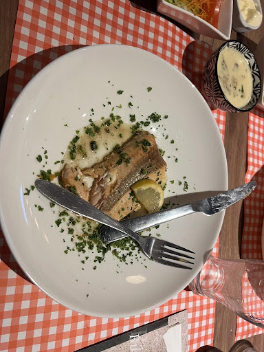 Read more19u30 gereserveerd, geen onthaal. 20u bestelling opgenomen. 20u30 garnaalkroketten, wat ok was. Als excusering voor lang wachten broodjes om te smeren. Hoofdgerecht zelfde bestek als voorgerecht, wat totaal niet hoort in een restaurant. 21u hoofdgerecht met scampi’s, wat ok was maar niet wauw & zalm met championsaus was slecht. Championsaus hoort niet bij vis maar bij vlees. Zalm was koud, taai, je moest er in snijden om er een stuk uit te krijgen, geen mooie roze kleur, niet vers en smaakte slecht. Gevoel om ziek van te worden. Vriendelijk gemeld aan personeel & nog geen 10min later terug hetzelfde bord hetzelfde stuk zalm met citroensap over. Dit was echt not done!! Echt lef dat je zoiets nog maar durft te serveren voor een 2de keer. Onze honger was totaal over!! Na 2uur zitten wilde we echt naar huis. Baas/kok gesproken met uitvlucht dat hij geen zalm lustte en ook niet geproefd had. Daarna uitvlucht personeels tekort + volgens hem goede champion saus die niet zo goed was. Geld terug gevraagd & deels gekregen. Avond was verpest maar enige opluchting voor het beetje begrip van de slechte...