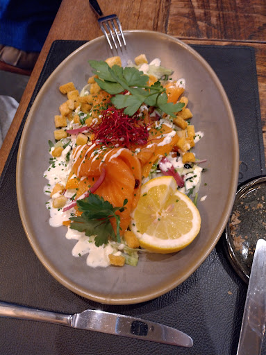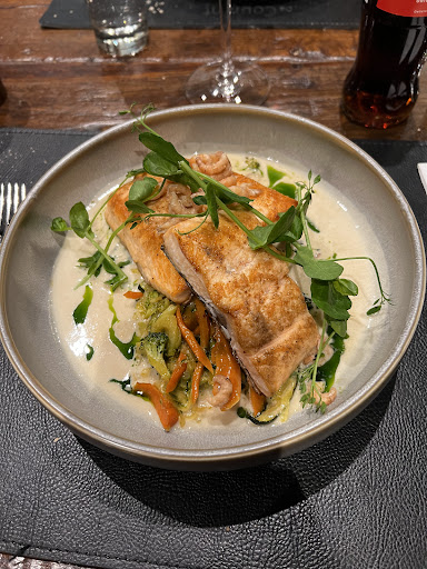 Read moreEen erg mooi gebouw, binnen buiten. Binnen heerst er een gezellige sfeer. De bediening is een beetje koel, maar correct Het eten is een paar ander mouwen. De filet pure was veel te klein, taai en in schijfjes gesneden. Dus erg snel afgekoeld en de jus liep over het bord. Veel te duur voor wat eigenlijk geen filet pure is . De tagliatelle met zalm was ronduit slecht. Bijna geen pasta en veel te veel stukken zalm. Ik vermoed geen verse zalm . De chef was erin geslaagd om een bijna pap te maken van het geheel . Ook vreemd dat de chocoladesaus over de dame blanche wordt gegoten door iemand van het restaurant. De saus wordt meegenomen waardoor extra saus op je ijs niet meer kan. De crème brûlée is lekker. Verhouding prijs...