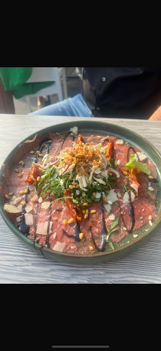 I ordered a pulled pork burger which arrived completely inedible. The bun was burnt and dry, the pork was very greasy. I asked the chef NICELY if he could switch it for another one and he said he would do it but he seemed very mad about it already… then my pesto pasta came, everything was fine with it (thank god), finally we had to pay. I only noticed they charged me for both of the meals after we paid. I had to pay €50 for them even though I sent back the burger untouched… I haven’t experienced anything similar in my entire life. Worst restaurant experience ever, never...