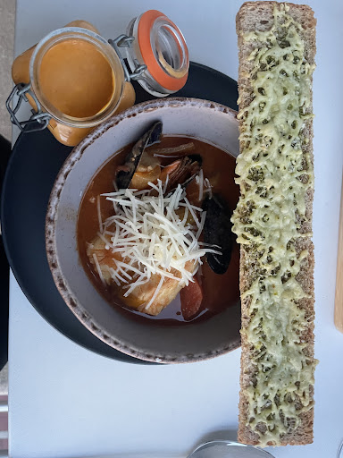 Read moreBij aankomst in Knokke een rijkelijk gevulde vissoep afgehaald. Deze was voorzien van rouille, kaas en gegratineerde broodjes. De kruiding en smaak was ongelofelijk. Top! 2 dagen nadien ter plaatste gegeten. We zijn gegaan voor gegratineerde mosselen als voorgerecht. Subliem. Ook hier zaten de smaken juist. Als hoofdgerecht, mosselen natuur. Een mooi gevulde kom met goed gevulde mosselen. Ook de ribbetjes waren excellent. Het vlees was zo gaar dat het van het bot viel. De beste ribben in jaren gegeten. Dit is een top adres in Knokke! Een...