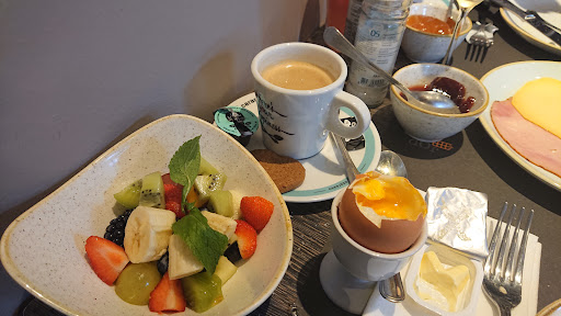Absolute rip off! Indeed extremely expensive for what you get. 3 euro for 1 mini half baked gluten free sandwich that came after we ate the rest of our food. 8 euro for half of an avocado of which half was brown! When asked a scrambled egg with smoked salmon inside we got thick chunks of half dried salmon just mushed in there. 2 soy cappucino's turned out to be big cups of watery coffee with a super thin layer of foam. The student working there was nice but when said something to the manager/owner that this is so expensice for what we got we got told off that these are their prices and that s it. But then again the place was empty and now I understand why. Go to pain quotidien for a healthy breakfast and pay less. Even at La Reserve hotel where we stayed you pay less for 2 people for a whole breakfast buffet! 60 euro for some eggs, coffee and almost no bread is scandalous!...