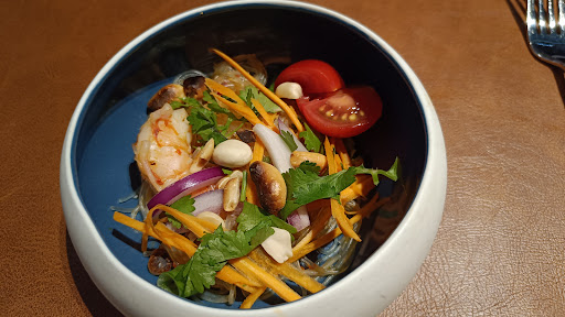 We opted for the Isaan discovery menu, warned (and intrigued) about its heat. The starters were decent—the sauces were flavorful—but the spring rolls were mostly wrapper, lacking filling. The main course included laab with grilled pork, which was delicious, and a somtam that was cloyingly sweet, lacking the usual balance of spice, sour, and umami (no dried shrimp either). We didn’t finish it and took it home. The steak was perhaps the biggest letdown: it was incredibly fatty and riddled with tendons, difficult to eat with spoon and fork. Half the portion ended up being inedible fat, as we discovered the next day.
