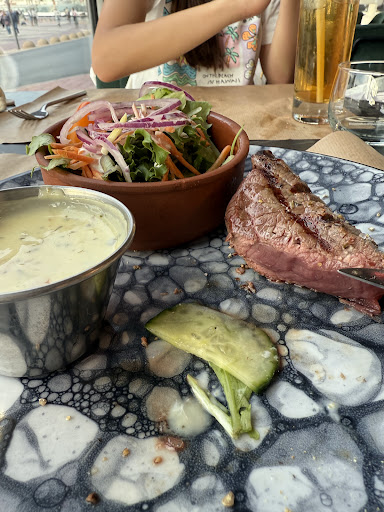 This was only the start: the dishes came frozen, specially the carpaccio and the chicken of the cesar salad (which you pay more than 20eu for!!) and some of the meat. The tables around us still had all the dirty dishes from previous costumers and it was quite disgusting to eat around that.