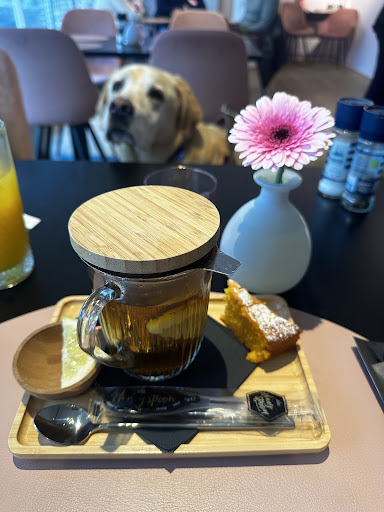 We stayed in the hotel nearby, but we couldn’t take our dog to the breakfast so decided to eat outside the hotel. We stumbled on this place in the morning and we received very warm welcome. We had amazing breakfasts during our stay in Knokke. Freshly baked cakes were delicious. Healthy breakfast choice was yummy and presented beautifully. Granola with yogurt and fresh fruits was generous and tasty. Despite busy mornings we were accommodated, served fresh food and...