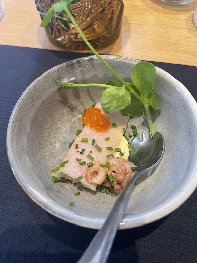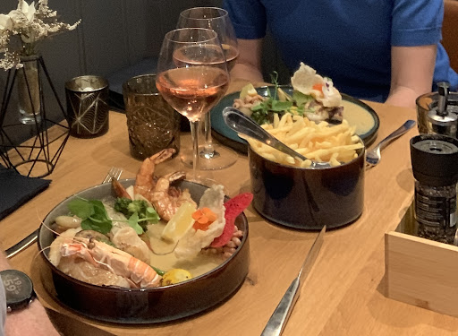 Super lekker, gezellige sfeer en vlotte en vriendelijke bediening! Menu gegeten en waarlijk ongelooflijk wat je krijgt voor die prijs qua kwaliteit, verfijndheid en hoeveelheid. Het dessert hebben we zelf een beetje laten inperken in portie op onze vraag (wat geen probleem was) en de (irish) koffie hebben we zelfs overgeslagen omdat we helemaal vol zaten. Een echte aanrader en we komen...