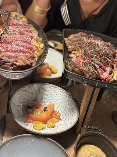 Hoofdgerecht Het hoofdgerecht was goed te eten en de bijgerechten waren ook erg smaakvol. We hebben 3 verschillende stukken vlees besteld welke alledrie erg lekker waren. Echter, zijn 3 stukken vlees écht € 425,00 waard (vlees voor 5 personen)? Ik denk het niet, maar goed dat is de ervaring die bij een zaak als deze komt kijken.