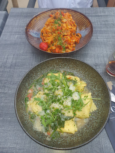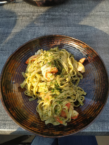 For the dishes: The quantity was there! Plates ate really full and you will get up and going very very full. No worries there. We took the tomate bruschetta. It was tasty and good.. but 17€ for 4 pieces of bread with olive and tomate on it. Then we took pesto pasta for the children. It was really good. For the adults I took the see food risotto. It was a lot of sea food - however I had a few mussels and shells with I guess sand in it. It was crunchy and unpleasant. It is unacceptable when you pay almost 40€ for the plate. The other dish we took was the salmon/spinach ravioli. It was good but unexpectedly had also sand or dirt as when you don’t wash properly the spinach - which can happen an home but not when you pay that much in a restaurant. Globally we would have given a 4star but the price and the sand/dirt misadventures put it down to 2* However we would like to point out that service was fast and that the 2 or 3 people we interacted with were super nice. We probably were unlucky with our plates and I’m sure it was a busy day, however we feel that for that price (about 170 for 2 adults and 2 children with no alcohol except for 1 beer) it can’t happen and food must be super washed and clean when served. I feel this is not a €€ restaurant as listed on google....