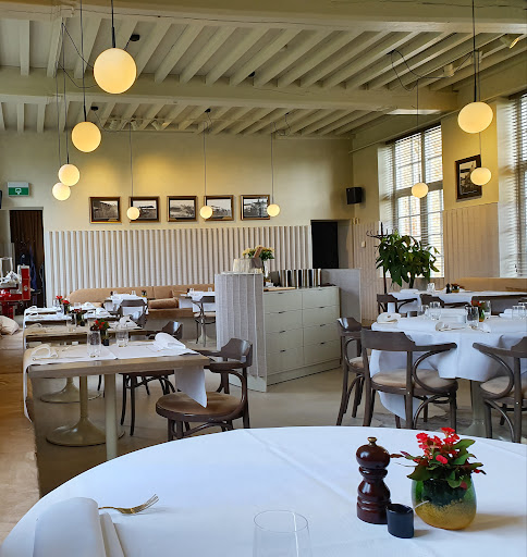 Read moreWat een prachtige locatie. En het eten was evenredig aangenaam voor oog, mond en geest. We aten in de tuin onder de grote prachtige parasols. Een alcoholvrij aperitiefje voor de chauffeur van dienst dat niet de zoveelste banale vruchtenmoctail was, lekkere champagne en wijnen voor de anderen. We mochten kiezen van de kaart en hielden het licht. Het vegetarische hoofdgerecht met vooral wortelen was zo subliem klaargemaakt dat ik er een maand later denkbeeldig nog van geniet. Uiterst professionele en vriendelijke bediening. Qua interieur is het ook zeker de moeite om binnen te tafelen. Trapjes om binnen te komen, trapjes alweer naar het terras: iets moeilijker voor mensen die niet goed te been zijn. Zeer ruime parking . Magnifieke ligging op de weg...