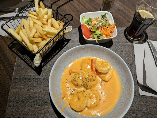 Het restaurantgedeelte was hetzelfde als 10 jaar terug ongeveer. We kregen bij de aperitief een amuse, het zag er niet uit.Maar het was lekker . Het voorrecht : garnaalkroket met extra garnalen waren super. De scampi maison. Spijtig er zat zowel bij mij als bij mijn dochter een haar in. We hadden dat eigenlijk moeten zeggen. Maar lekker van smaak. Dessert : gewoon een vanille ijsje maar daar was karamelsaus bij. Vooraf zeggen aub . We hebben via social deals weinig betaald. Maar eigenlijk is het de bedoeling dat we tevreden zijn en de volledige prijs willen betalen. Ik heb dat toch al een aantal keren gedaan .De eerste keer via een minder tarief en dan betaal het volledige tarief omdat je zegt. Dat is het echt waard. Nu spijtig genoeg niet : geen hygiΓ«nisch gevoel. Mijn verontshuldegingen het is maximaal een 2 waard en waarschijnlijk meer...