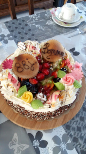 Read moreUitgebreide warme bakker met veel taarten, koeken en uitgebreid brood assortiment. Grote belegtoog met...