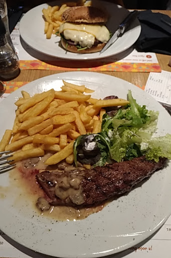Read moreWe have arrived here with the help of a local student. At first glance it is a nice place with nice music. A family restaurant. The prices are good, not too expensive. We went into the train wagon to eat. The difference of temperature is huge! The entire period we've stayed here, we've started to sweat a lot. The drinks have arrive quickly, but for the food we have waited 1 hour (+/- 5 minutes). The waiters are normal people, they did not do anything wrong, but nothing exceptional either. The food was good, except the chicken burger where the chicken has been so crispy that sometimes it hurt my gums. If you don't want to climb a little mount Everest, don't go to the toilet. In conclusion, my entire experience has been lower than 3 stars (overall it was 2.5 stars) and, honestly, I will not...