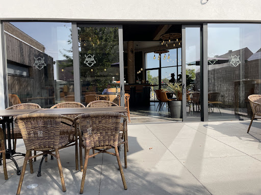 Leuke zaak ook. Even wennen. Na de inkom heb je een afhaalpunt en keuze om daar te zitten. Als je door de gang heen gaat dan is er een ruime eetgelegenheid voorzien van 2 tot 8 persoonstafels. Alles keurig schoon, ook de toiletten. Er is een prive terras met een kinderspeelhoek.