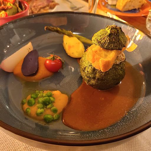 A lovely meal with attentive service in a family-run restaurant. On Friday nights, the lunch menu is available. After starters (bruschetta and a poached egg dish), we had the bavette frites and the mini squash...