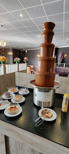 Read moreWereldkeuken, niet een correcte naam in mijn ogen als je alleen Aziatische gerechten serveert. Mediterraans, Zuid-Amerikaanse, Afrikaanse, Oosterse keuken horen ook onder die noemer thuis en waren nergens te bekennen. Misschien een goede formule voor een (grote) groep om aan een vaste prijs een vrij grote keuze aan gerechten aan te bieden, maar ik bleef wat op mijn honger zitten. Bij de frituurhapjes waren waren er op moment dat wij gingen een 3-tal schotels volledig leeg. Er waren 2 soepen, een koud en warm buffet. Er is mogelijkheid om zelf een keuze te maken van ingrediënten om te laten wokken en ook teppanyaki was beschikbaar. Daarnaast was er ook nog een dessertbuffet, dat buiten een paar ongekende en onherkenbare vruchten ook heel gewone Europese gebakjes,ijsjes had. Alle gebakjes in mini-versie behalve de punten appeltaart, die grootte is werkelijk onwezenlijk en veel te groot, en viel heel zwaar op de maag. Een heel groot minpunt is: een naamplaatje met welk gerecht op de schotels liggen mocht wel aanwezig geweest zijn, enkel voor bami en nasi stond een bordje, sorry maar dat was dan niet nodig, noedels en rijst zijn wel beter gekend, dan zoiets als een ... versie van gember. De bediening was zelfbediening, waar er wel contact was met personeel, was dit heel vriendelijk en correct. Maar de robot die om de haverklap op pad gestuurd werd voor de Happy Birthdays was vrij irritant, ik was blij dat mijn tafelgenoten niets over het vieren van mijn verjaardag...