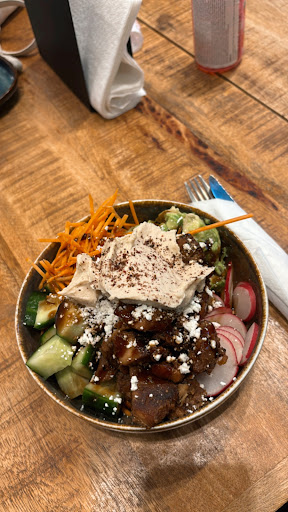 Après encaissement de la commande, la serveuse désagréable précise que la moitié des produits sont indisponibles et pas de changement du bowl possible. Majoration de prix non affichée, service très lent... à déconseiller fortement. Cela devient systématique qu'il manque la moitié de la carte. Le personnel a été changé et est beaucoup plus incompétent. Ce n'était pas comme ça à l'ouverture. Une telle baisse de qualité de service est dommage.
