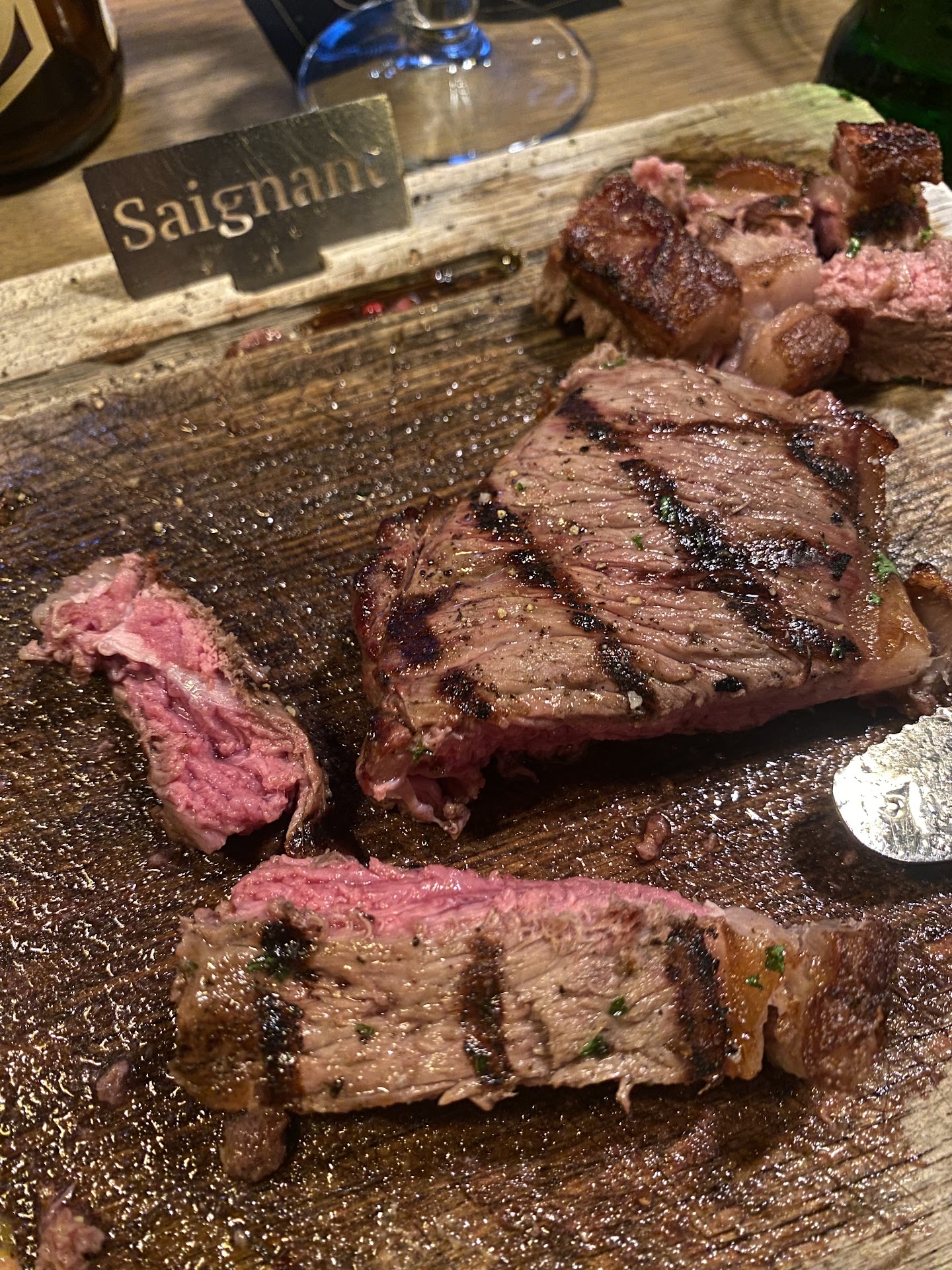 Read moreDit is een vrij duur restaurant waar wij de pech hadden dat er net een menu-wissel plaatsvond. Daardoor was de helft van het menu niet verkrijgbaar. Gelukkig boden ze wel alternatieven aan. Zo had ik de varkenswang van €30,-. Deze was iets te gaar helaas. Je kan naast het gerecht ook heerlijke bijgerechten bestellen, maar dat kost helaas €5,- per bijgerecht. Zeer prijzig, want wat bij het gerecht zelf zit is een beetje teleurstellend. Je krijgt er voor die prijs wel frietjes of aardappeltjes bij.