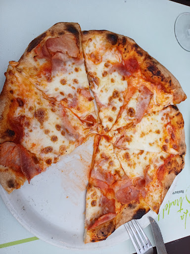 Slechte ervaring. Toen we om kwart voor 7 aankwamen was er nog een tafel beschikbaar en konden we plaatsnemen. Er werd gevraagd wat we wilden drinken en werd binnen 5 minuten op tafel gezet. Daar kan niks over gezegd worden. 5 minuten laten werd gevraagd of we wat wilden eten en zo ja wat. We bestelden beiden een pizza waarvan ik om 18:55 een pizza prosciutto had besteld. Het was niet vreselijk druk op het terras. Om 20:05 hadden we niet het idee meer dat er een pizza ging komen gezien het terras zo goed als leeg was. We spraken een ober aan die een beetje verbaasd keek. Niemand had eigenlijk een idee. Waarom later een dame naar ons toe kwam dat het nog een kwartier ging duren. Ze waren de pizza's vergeten. Zeer chaotisch personeel wat helemaal niet van elkaar weet wat ze aan het doen zijn. De een ruimt tafels af en gaat er met een doekje en desinfect overheen waarvan de ander 3 minuten later dezelfde tafel nog een keer afneemt. 5 verschillende mensen op de vloer en ze hebben geen idee wie wat doet en dat is te zien. 1.5 uur na de bestelling kwamen daar dan de pizza's. Een heerlijke prosciutto....althans volgens de kaart. Want ik kan het geen prosciutto noemen. Eerder pizza mozzarella met ham. En nee, geen parmaham. De smaak was gewoon zeer teleurstellend. En de pizza's die we vorige week thuis zelf hadden gemaakt op de pizzasteen waren helaas beter. Met als klap op de vuurpijl mijn vriendin die later diarree had. Wij waren dan ook niet de enige bezoekers die teleurgesteld en ontevreden waren. Jammer. Gezien we hier 4 dagen zijn en al 2 dagen...