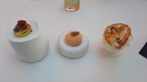 Service en algemene vibe in dit resto was eerder stijf en niet met de grote spontane lach. Voelde wat gemaakt aan. Alleen de jongere kerel die op het eind kwam vertellen over whiskey straalde passie uit. Top.